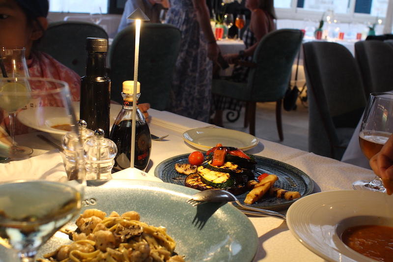 セレブも集うというミシュラン掲載店だそうで、サービスももちろん、リゾート地らしいのびやかさのあるレストランの雰囲気もまた素晴らしかったです。テラス席と、階段上がった一階がオープンエアのレストランになっています。
