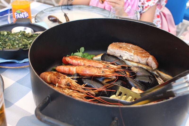 特筆すべきは、この鍋ごと出される魚介のグリル。シンプルにオリーブオイルと、お塩だけで、それぞれの素材のおいしさが思う存分味わえる一品。