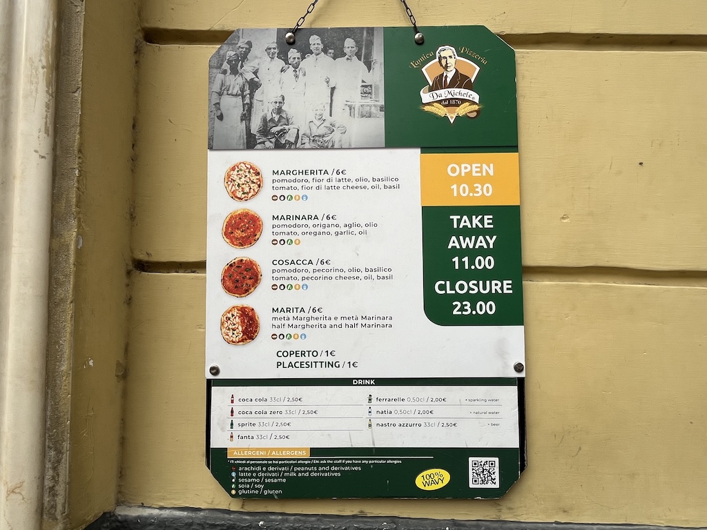 治安が良くないと聞いていたので、駅前は足早に通り過ぎ、お目当てのピザ屋Pizza da Micheleへ。(実際に怖い思いなどはしませんでしたが、他の都市に比べてm人取りの少ない路地が割とあるなと感じました。)