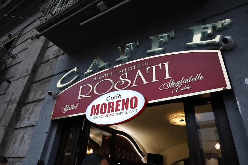 ふと通りかかった老舗の風格漂うカフェROSATIで、おやつを調達してローマに帰ります。