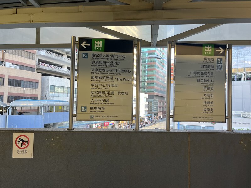 香港IDを持っている未成年者は機械認証対象外とのことで、その足で観塘のテンポラリーオフィスへ向かいました(TKOのスタッフが予約をとってくださったので、スムーズでした)。B1出口から10分程度歩きます。
