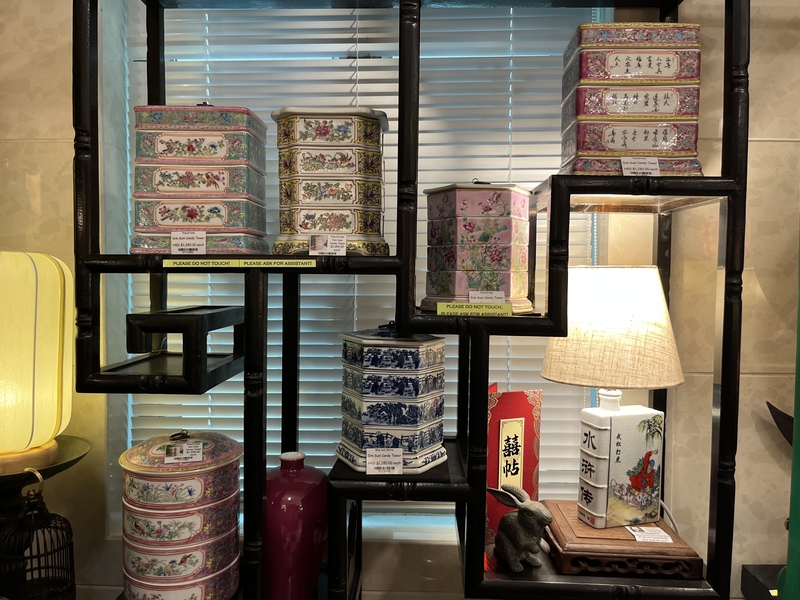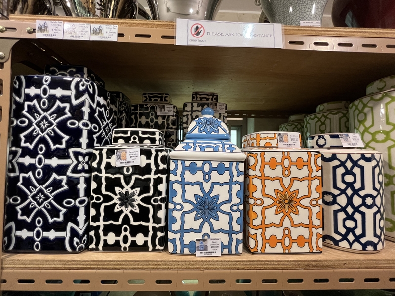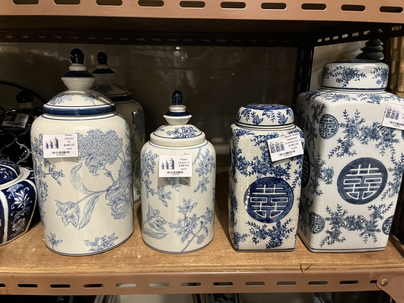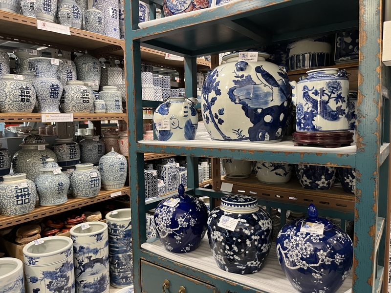 シノワズリな雰囲気のトレーや壺、家具などがあります。