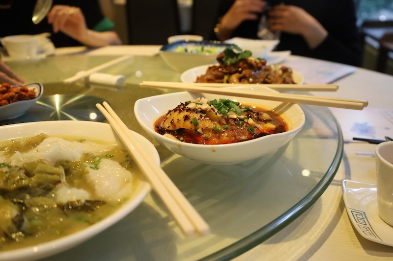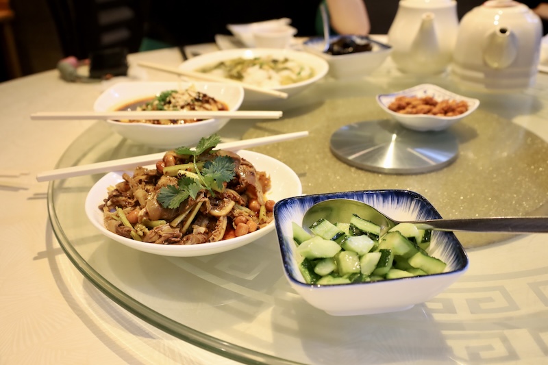 そして、アラカルトから夫妻肺片(四川省成都市の屋台でご夫婦が考案したということに由来)という、牛タンやギアラ、ハツなどのスライスを四川風に味付けした前菜を注文。色々と食べているうちに、どれが辛いのか分からなくなってきますが、全品の中でこれが一番辛かったです。