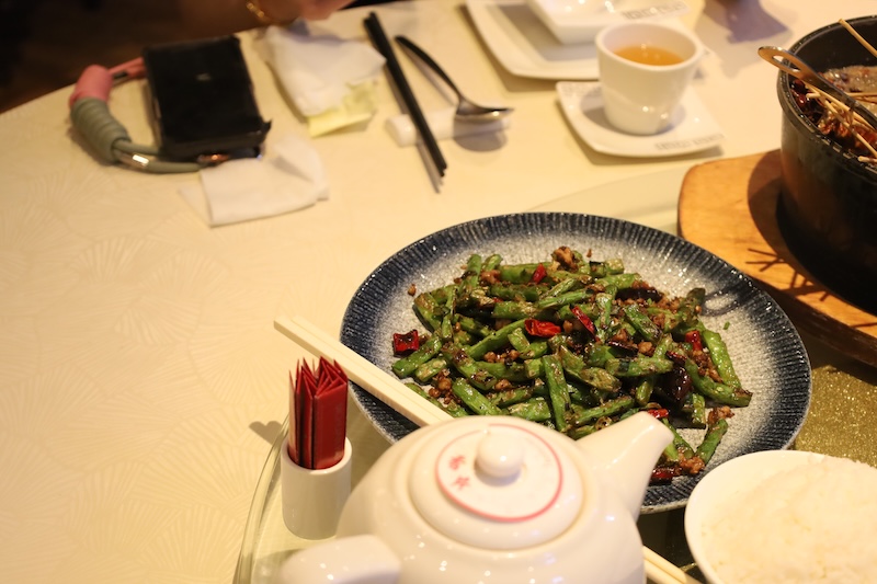 平日ランチの時間に5人以上のグループということで、四季豆をサービスしてくださいました。無料とは思えない量にびっくり。これもピリ辛です(一般には、辛くないお店の方が多いかな?)。